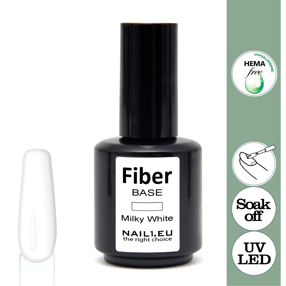 Fiber Base Milky White se sklo-vláknem a vitamíny pro prirodní nehty. ideální pro velmi slabé nehty. Fiber Base obsahuje ve svém složení vitamín E a vápník.