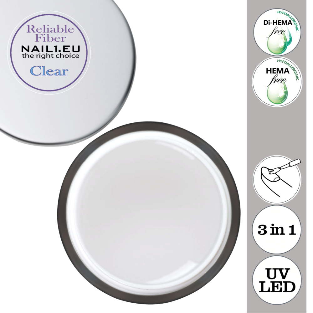 Reliable Fiber Clear UV/LED Gel. HEMA&Di-HEMA Free jednofázový gel - hypoalergenní.