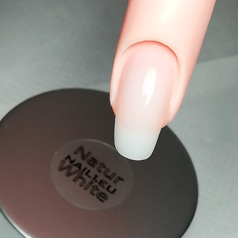 ProfiLine* Natur White UV Gel středně husté konzistence. Mlečný jednofázový gel. Odstín - Bilý, mlečný, lehce pruhledný (half transparent color) - přírodní barvy nehtů.