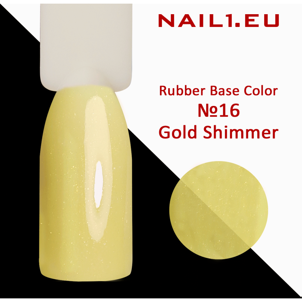 Limitovaná edice Rubber Base Color №16 Gold Shimmer UV/LED gel lak je barevná Base na přirodní nehty s dobrou přilnavostí, speciálně navržení pro zpevnění přírodních nehtů. Dokonale zvládá náraz a ohyb přírodního nehtu. Elastický a flexibilní. Ideální v kombinaci s Rubber Top Gel.