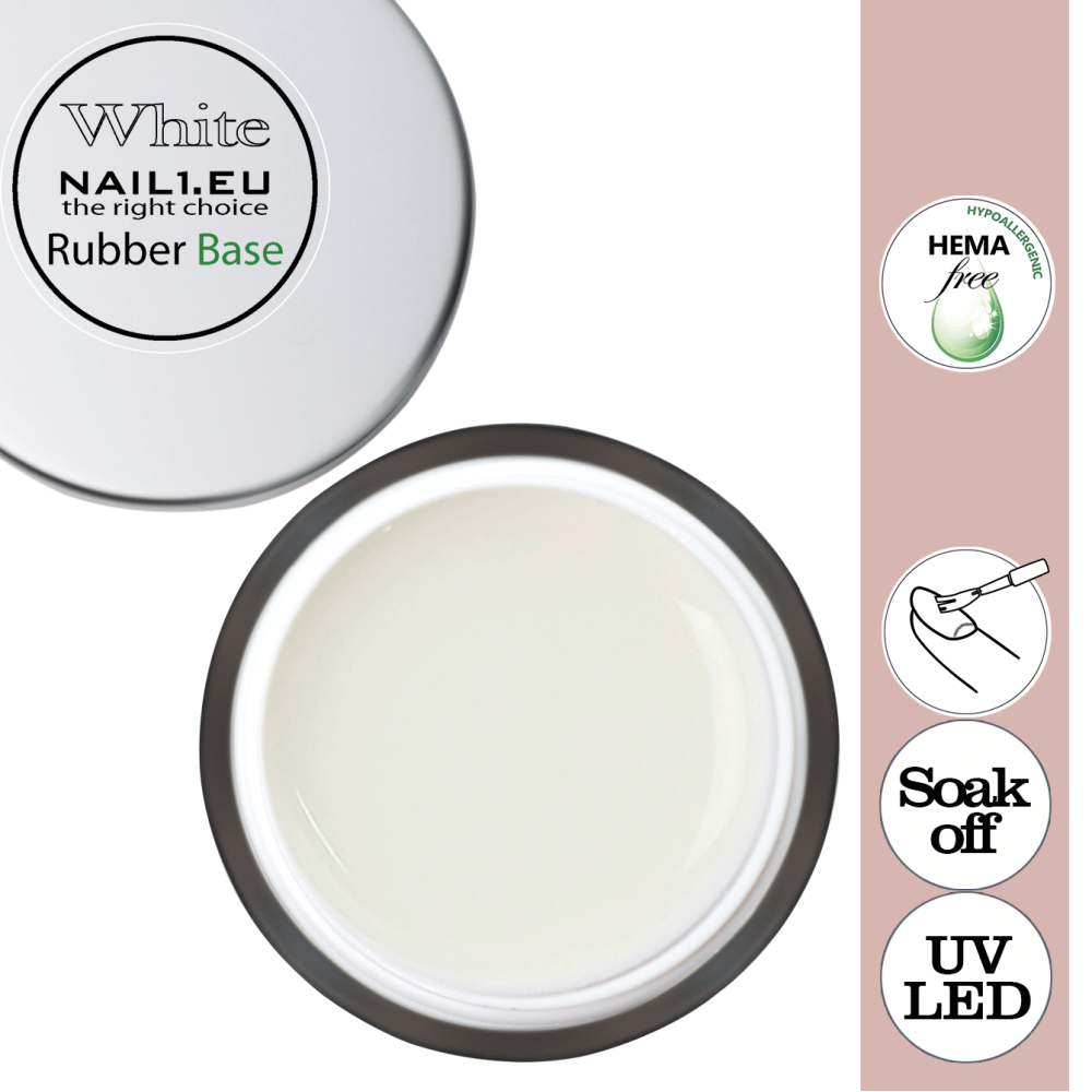 Pomocí Rubber White Base můžeme opticky prodloužit nehtové lůžko. Slouží jak ideální podklad před nanesením, světlých odstínů Gel Laků nebo zpevnění přírodních nehtů pro klienty, které máji světlou plet.