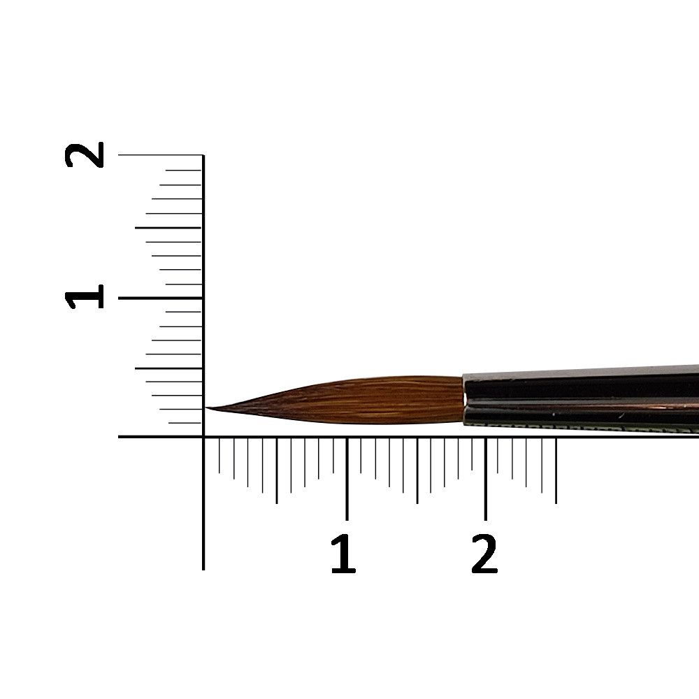 Kulatý štětec ze 100% přírodního vlasu sobola, známé pod jménem Kolinsky, bezešvé niklové kování. Kratká lakovaná rukojeť.