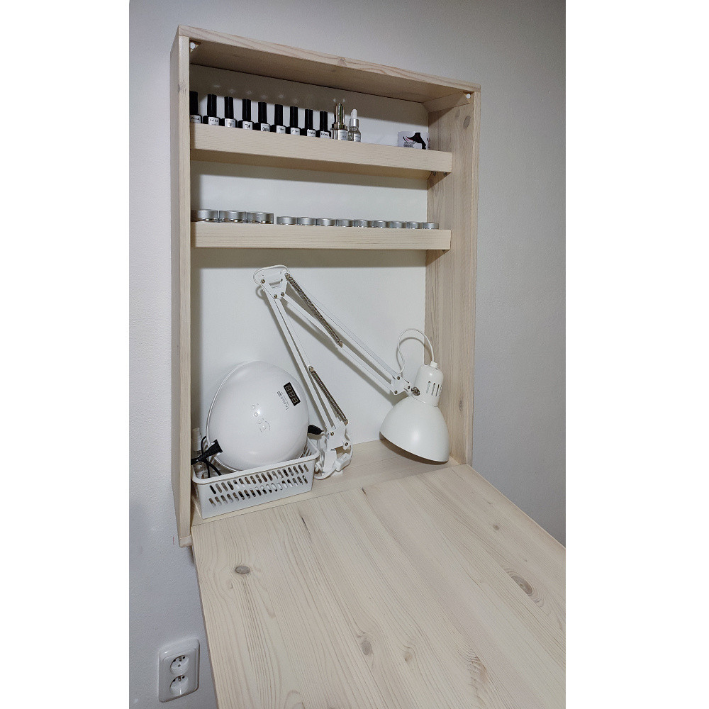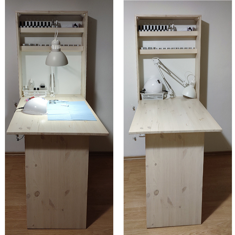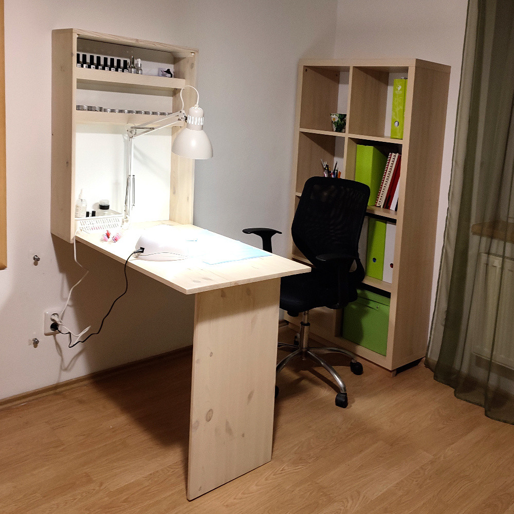 Pokud nemáte dostatečný prostor na vlastní pracovní stůl, tvoříte, děláte manikuru jen sobe nebo teprve s tím začínáte, pak Sklápějící řešení pro Vás je ideální.