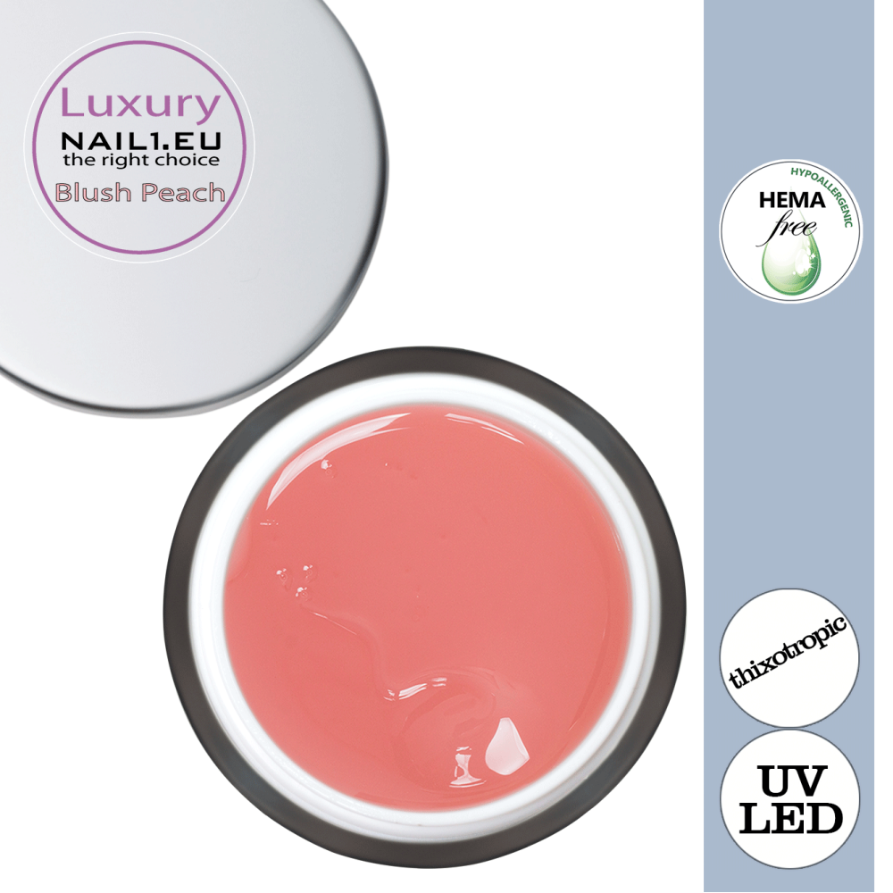 Luxury UV/LED Gel Blush Peach je exkluzivní modelovací tixotropní gel s pevnou texturou, která není tekutá. Díky své konzistence s ním se velmi snadno pracuje na nehtech jakékoliv délky a tvaru.